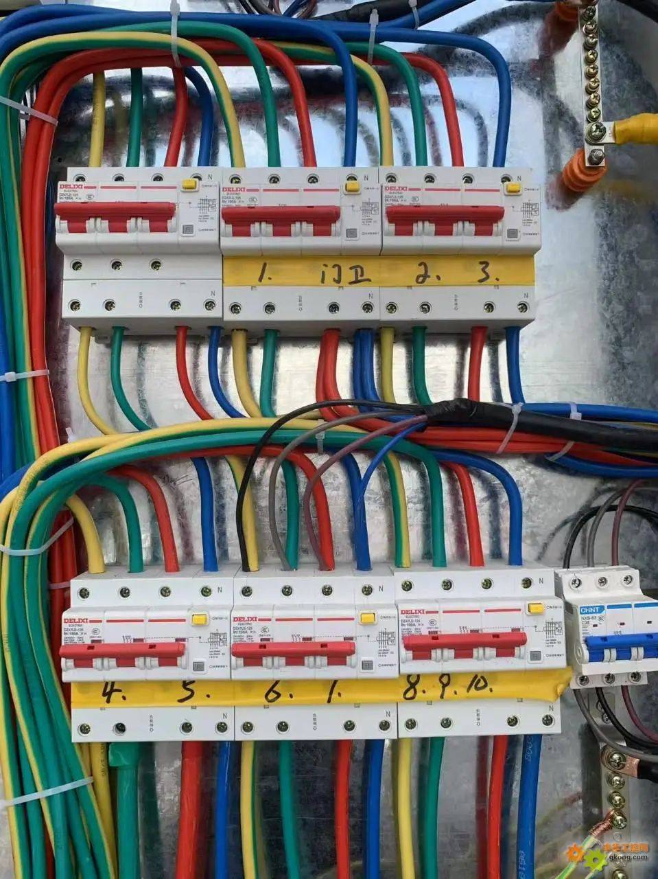 朋友们一起来看看,今天看到一个配电箱,里面的断路器是这样接的