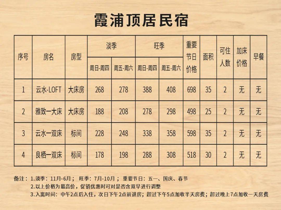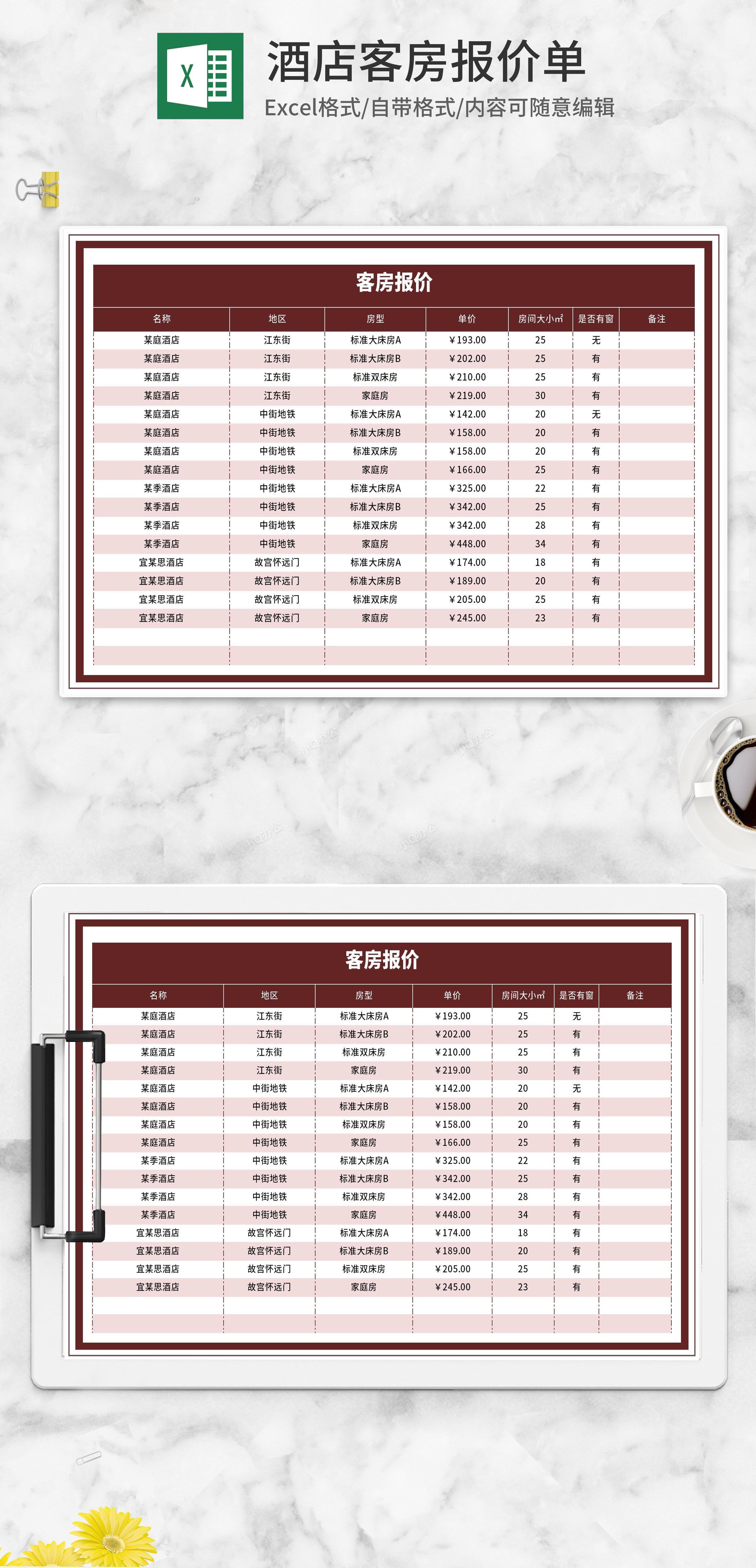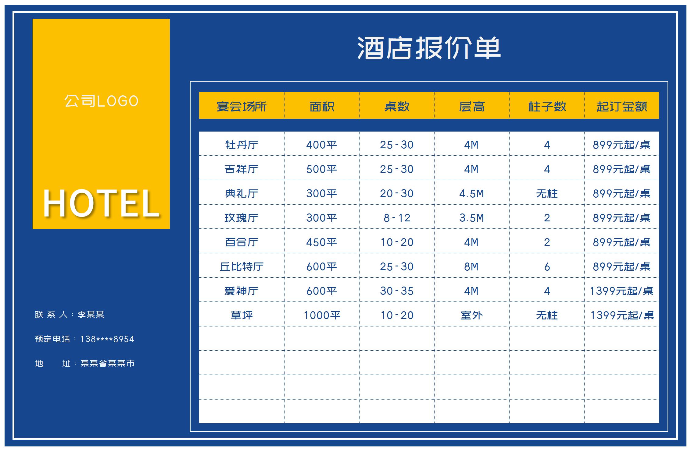 酒店价格单