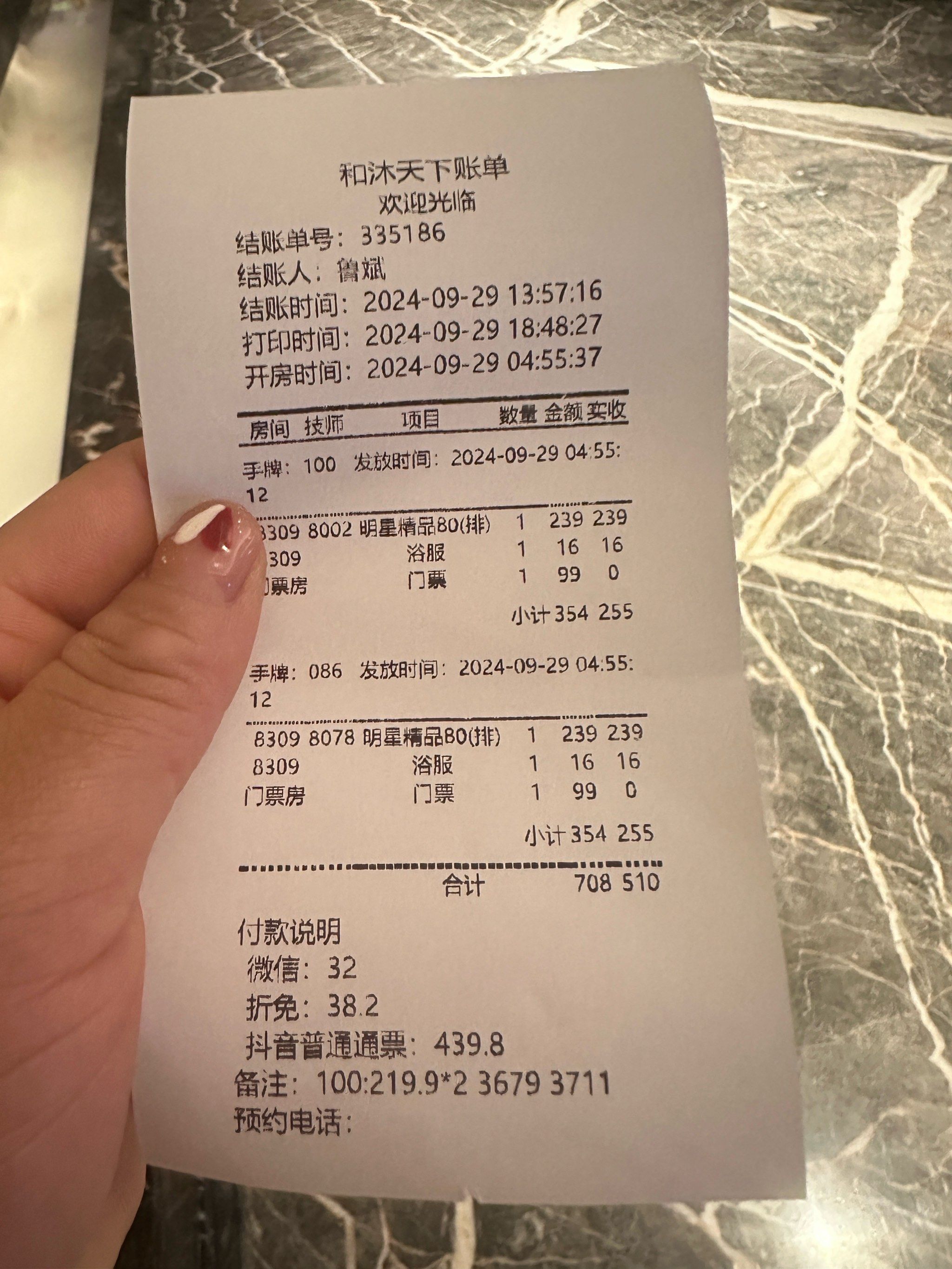 连锁酒店明细账单