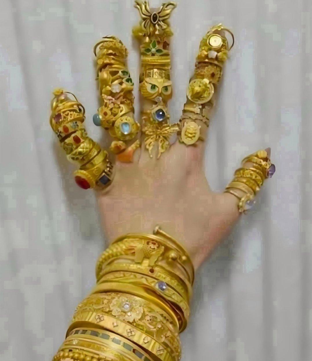 金镯子,圈口大的容易走样,戴着戴着就变形了