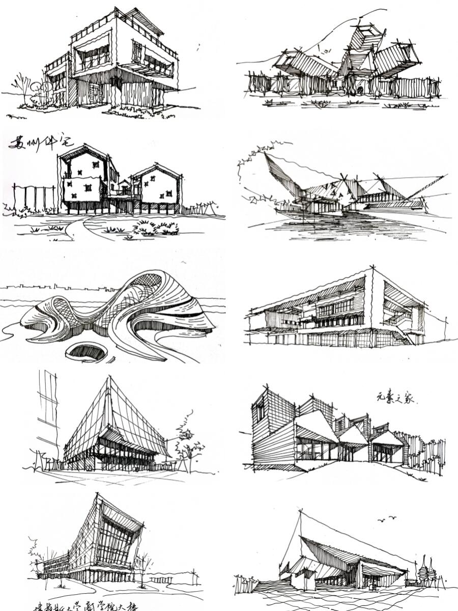 建筑手绘设计草图分享 应教授的强烈要求,这次用铅笔画快速画了这次