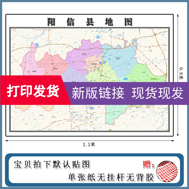 阳信县地图1.1m现货包邮山东省滨州市高清图片区域颜色划分墙贴
