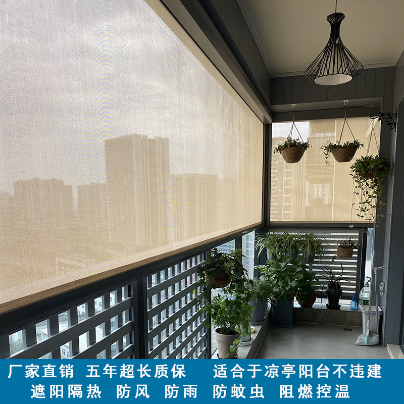 阳台窗帘户外防风卷帘防蚊智能窗帘阳台防风防雨遮阳防蚊防尘卷帘