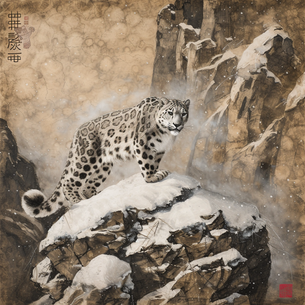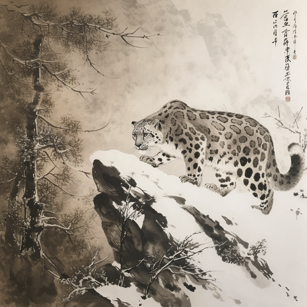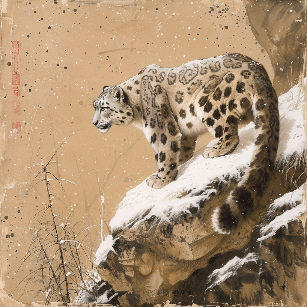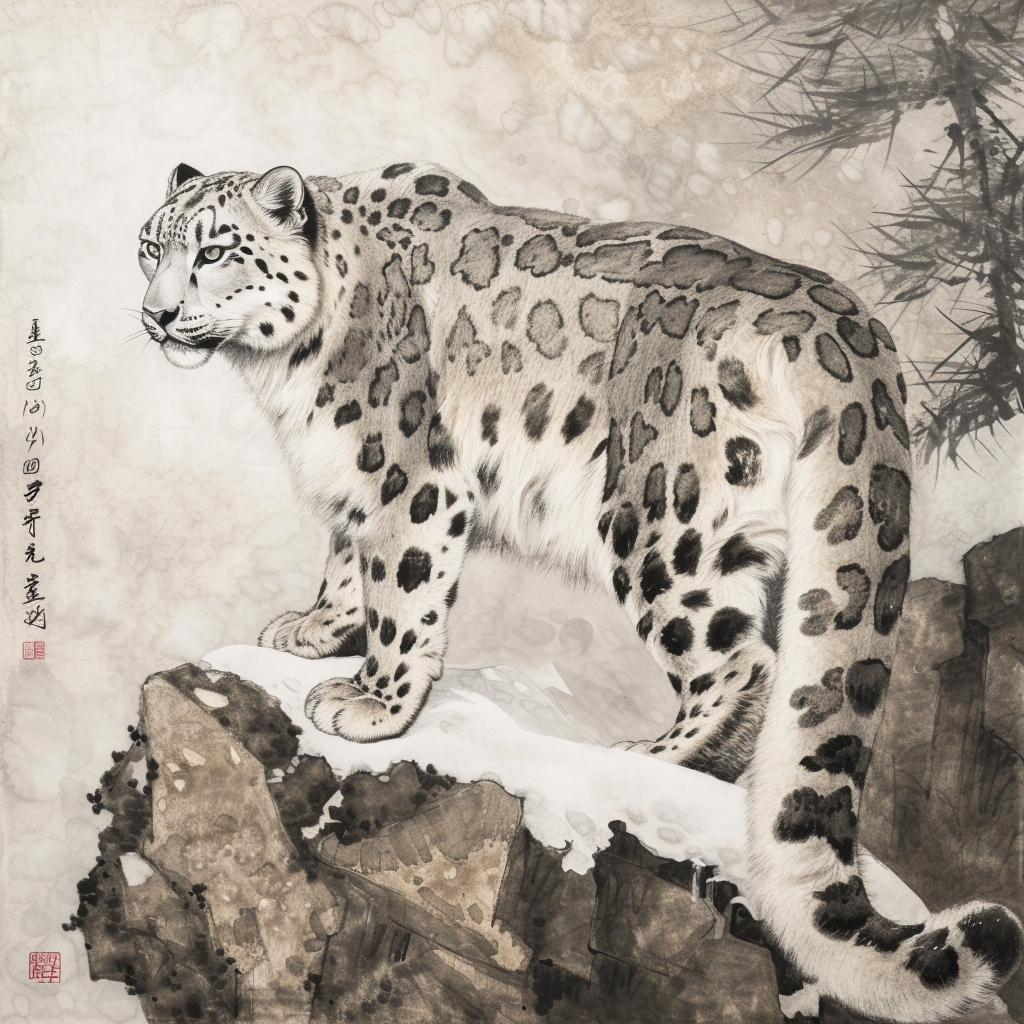 雪豹图片 国画