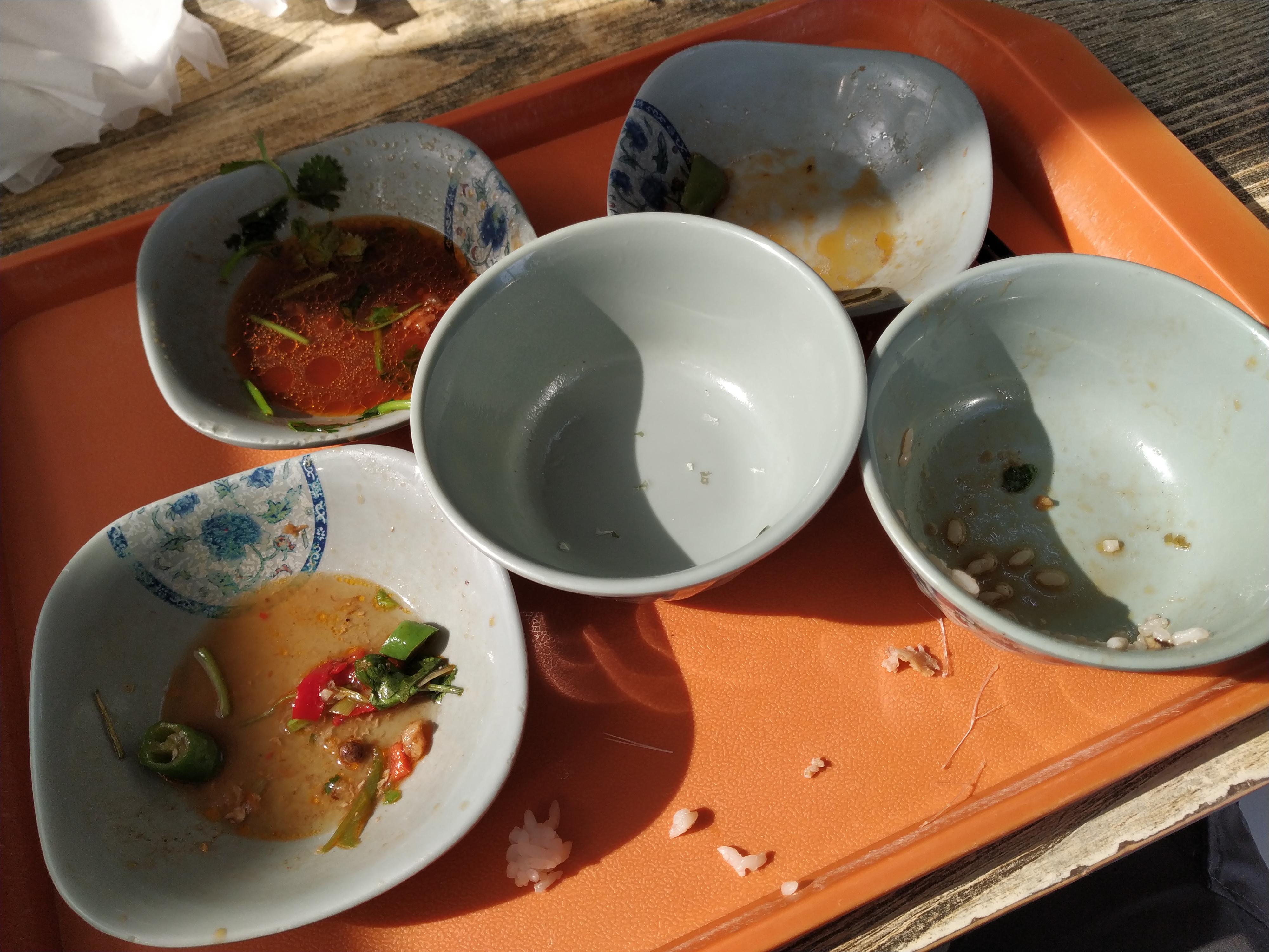 满地碗筷食渣,吃光光的一顿,好吃,爱吃