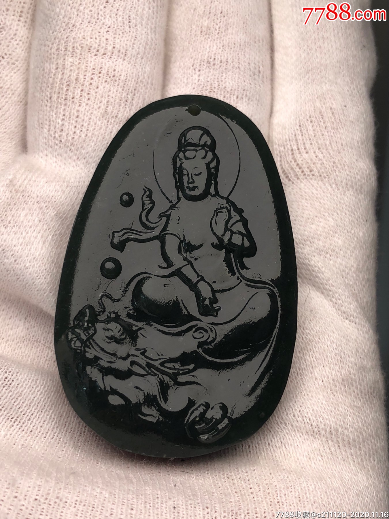 男士墨翠骑龙观音护身符挂件珠宝玉坠定制款一物一 骑龙观音玉牌 珠链