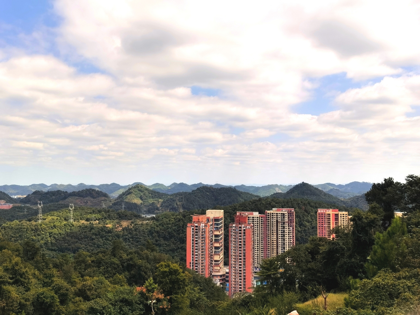 高楼大厦矗山中