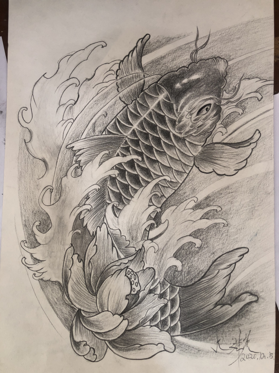 锦鲤纹身手稿