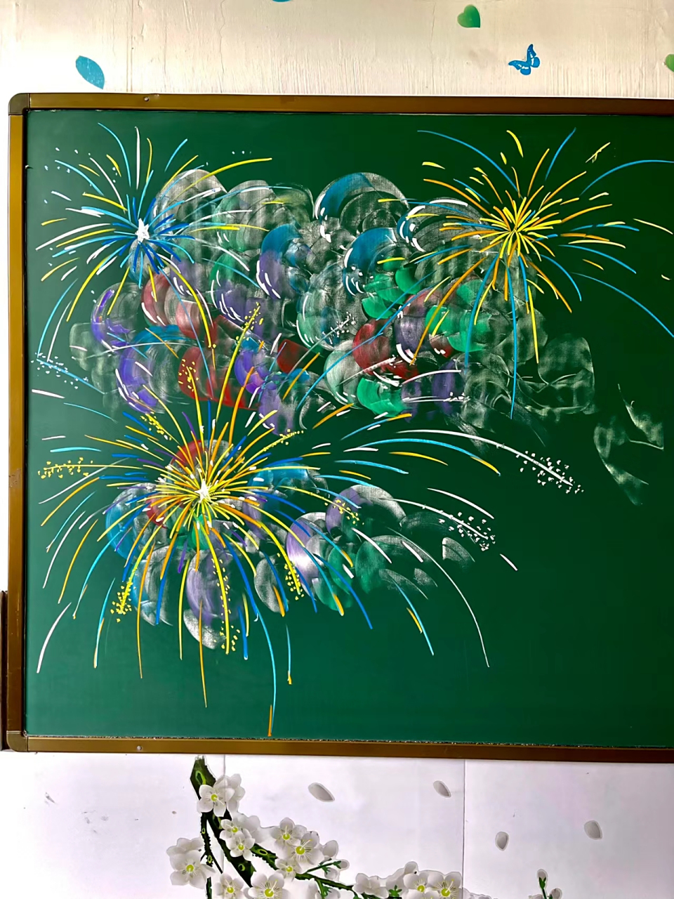 气球烟花黑板报素材,粉笔画技巧大公开