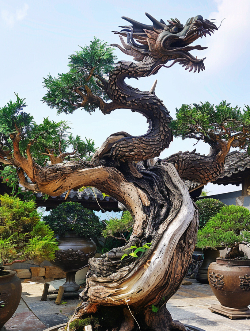 龙头盆景,龙与植物结合盆景,造型栩栩如生,悦目娱心!#ai画虎烂