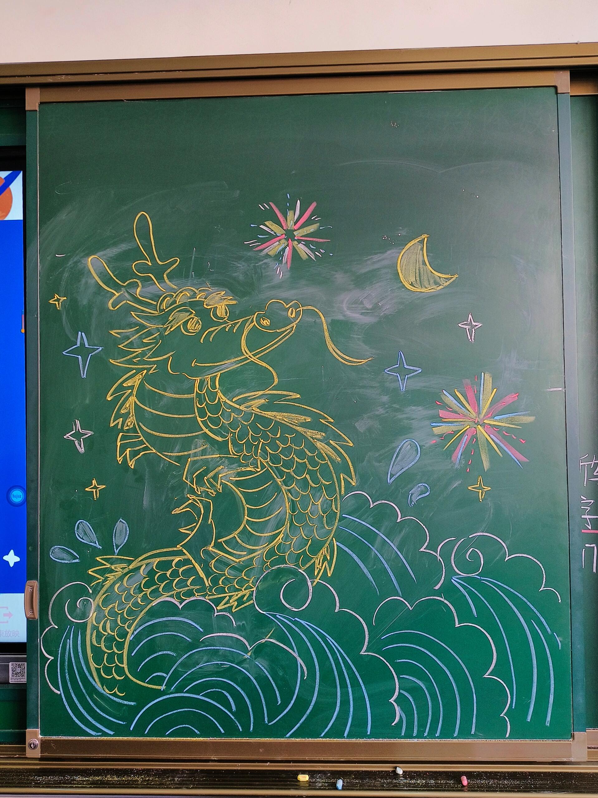 黑板画,黑板画龙,元旦黑板报#图腾图案 🐲🐲