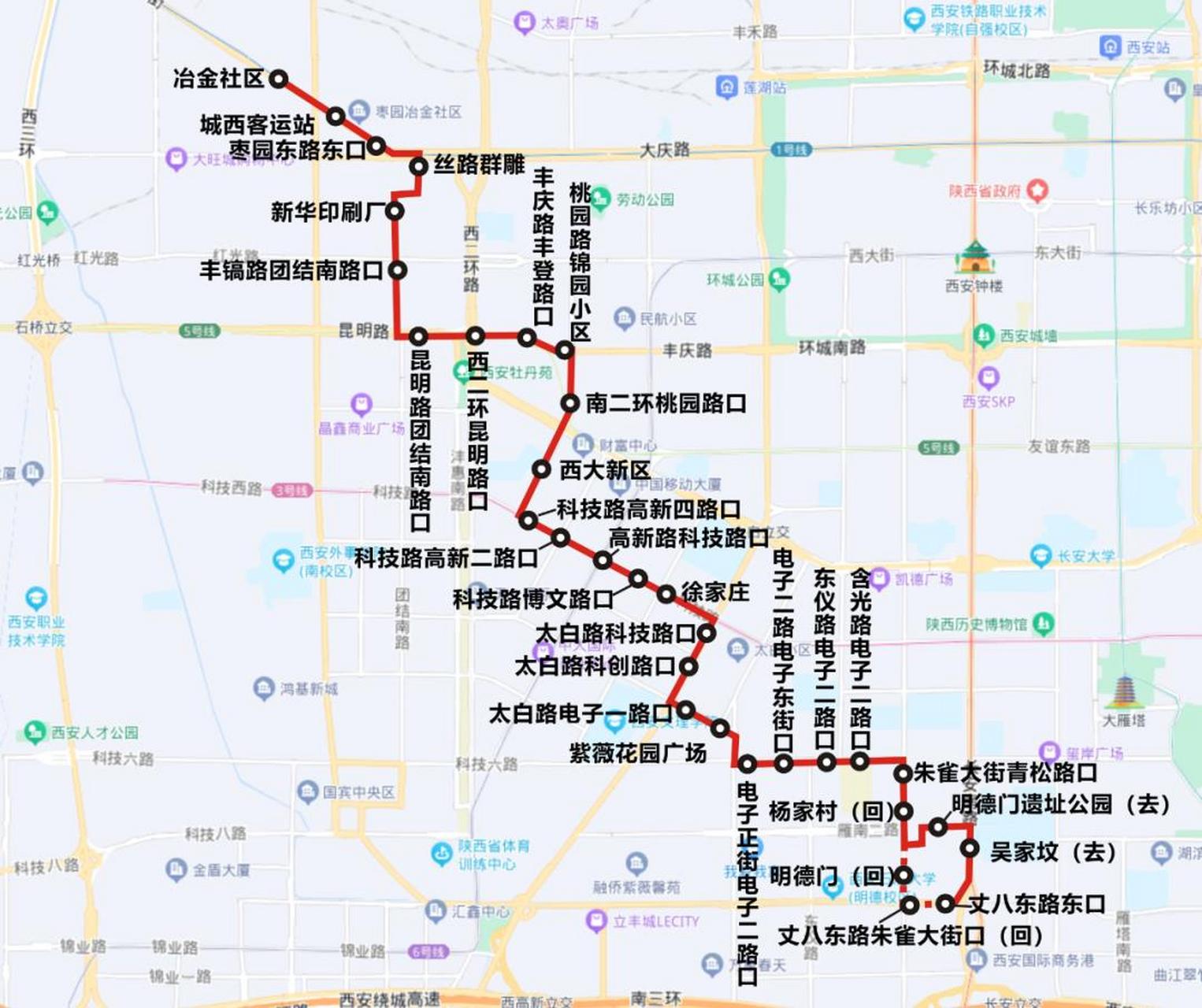 西安公交第四公司210路线路途经城西客运站