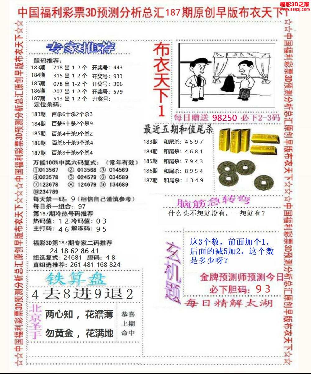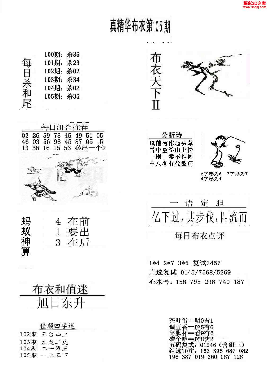 福彩172期3d真精华布衣 布衣早报