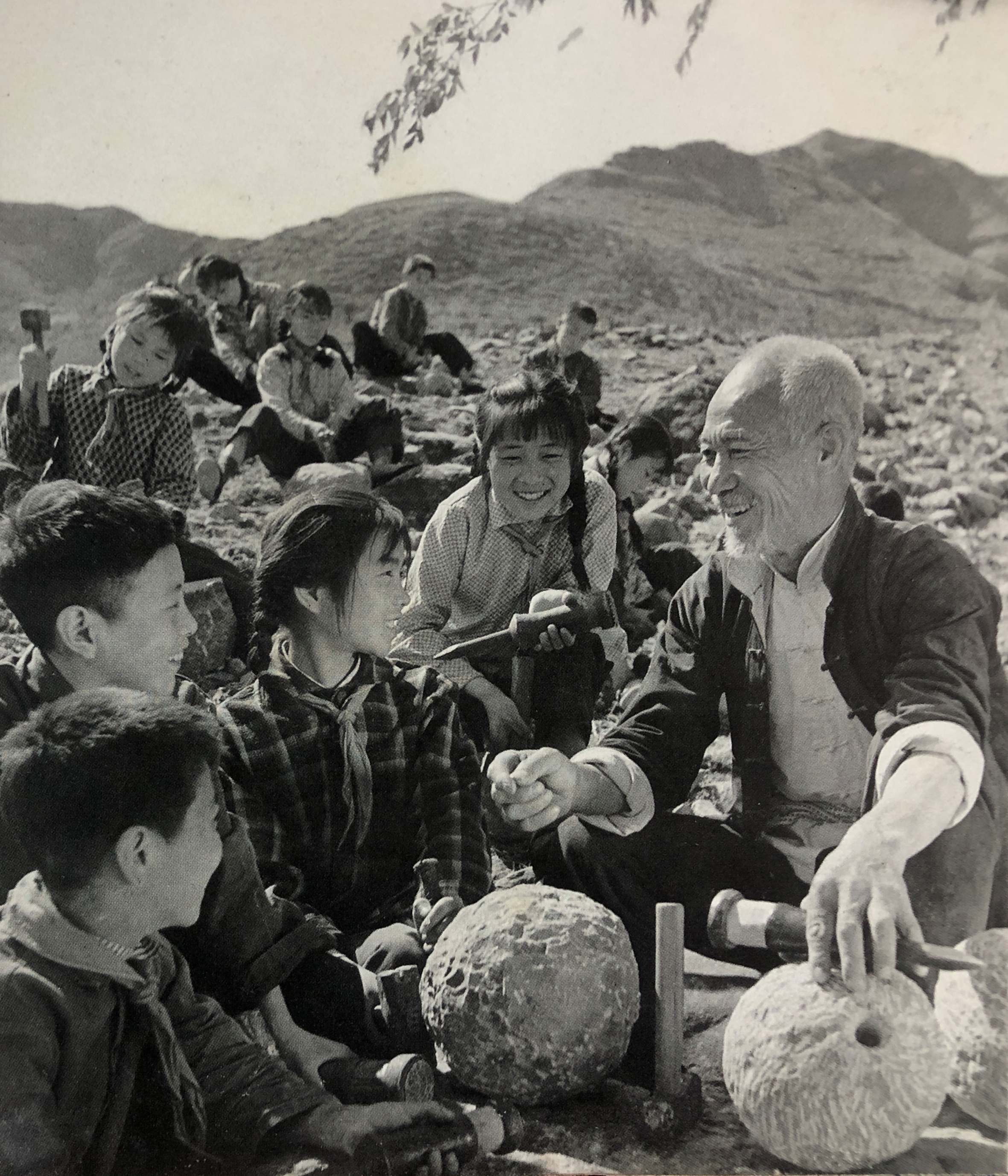 70年代,时任浙江黄岩县县委书记吕众义和群众一起劳动时的留影,照片中