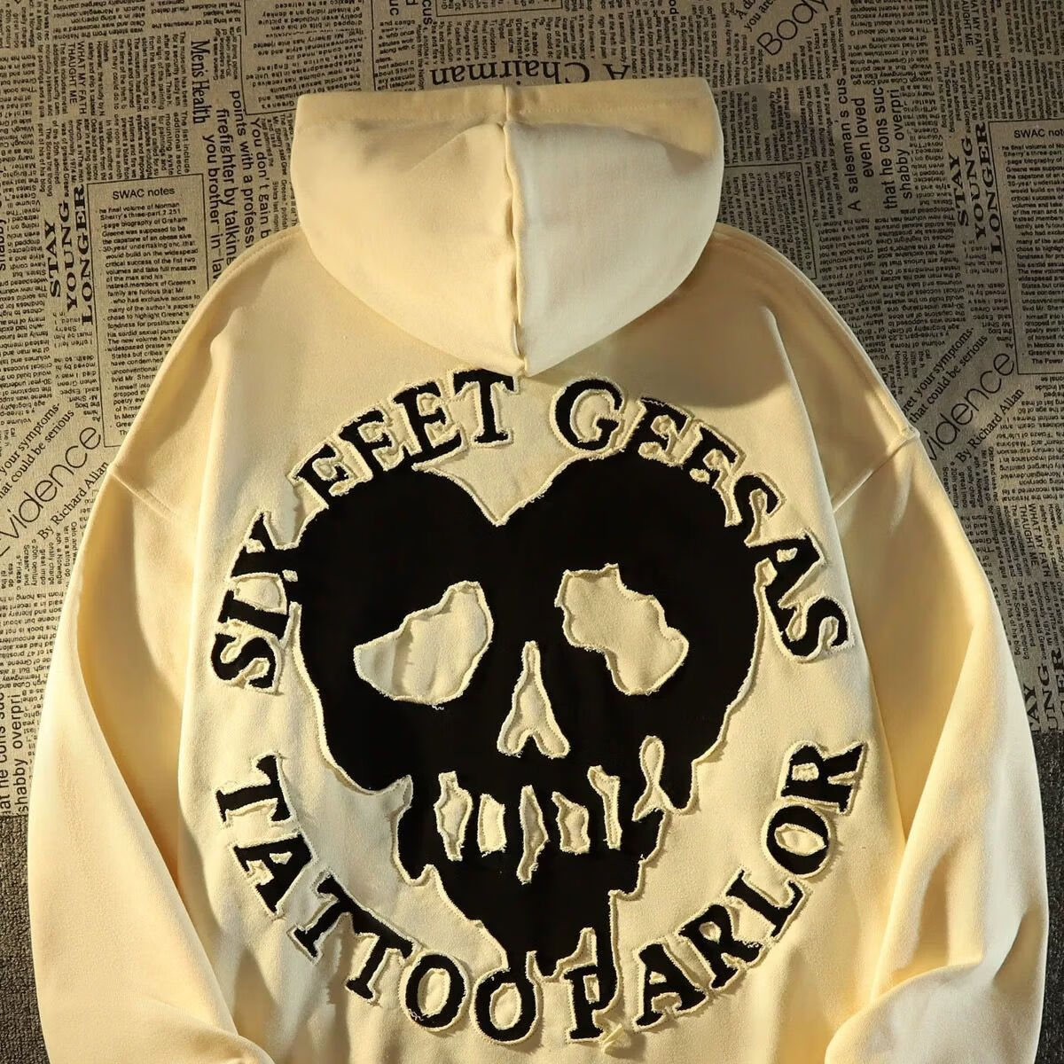 天龙致尊denon supreme卫衣男女欧美潮牌骷髅头刺绣不加绒薄款套头连