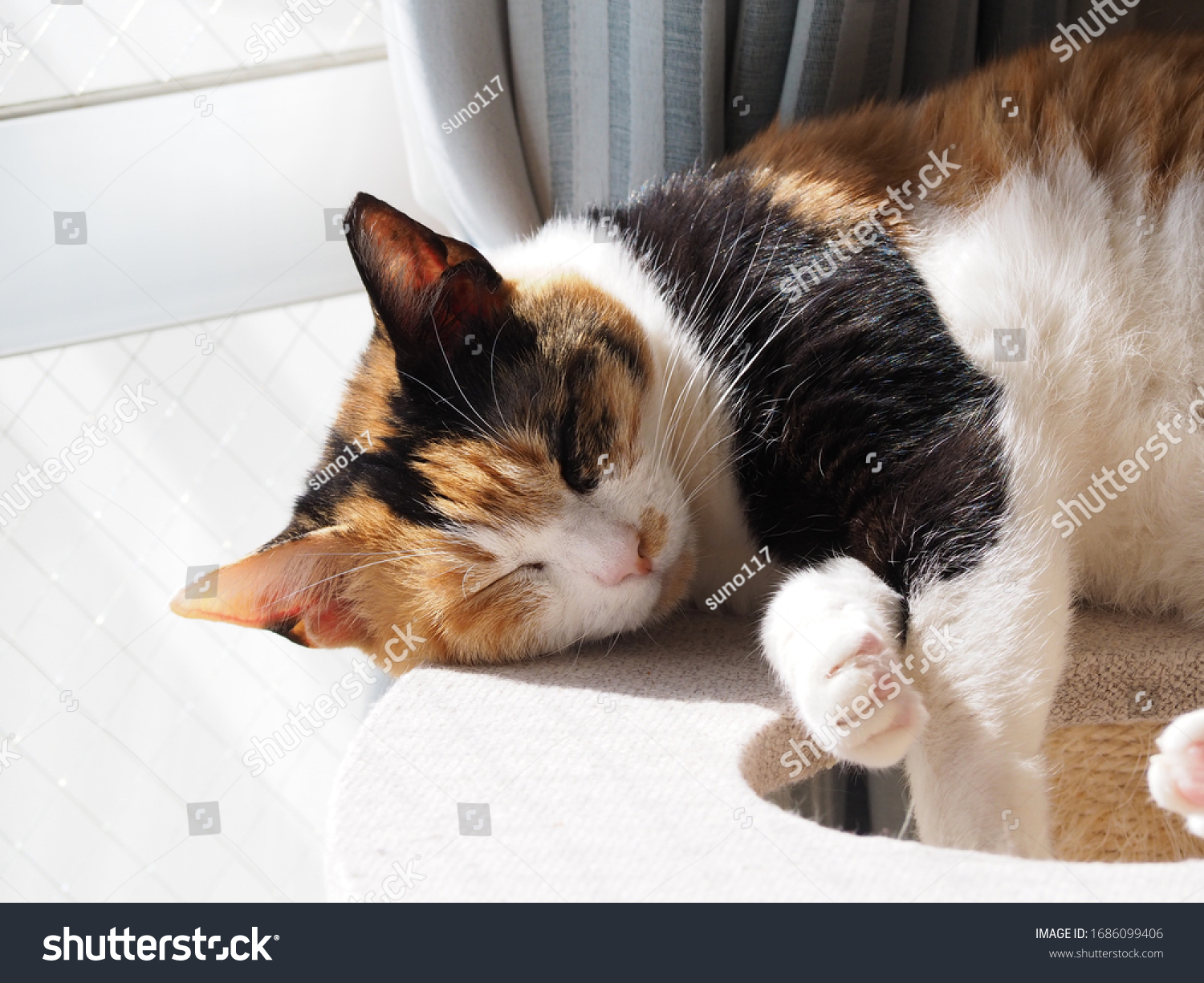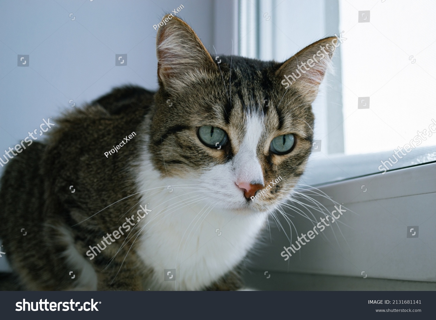 cutesleepycatsittingonthewindowstillbottomview
