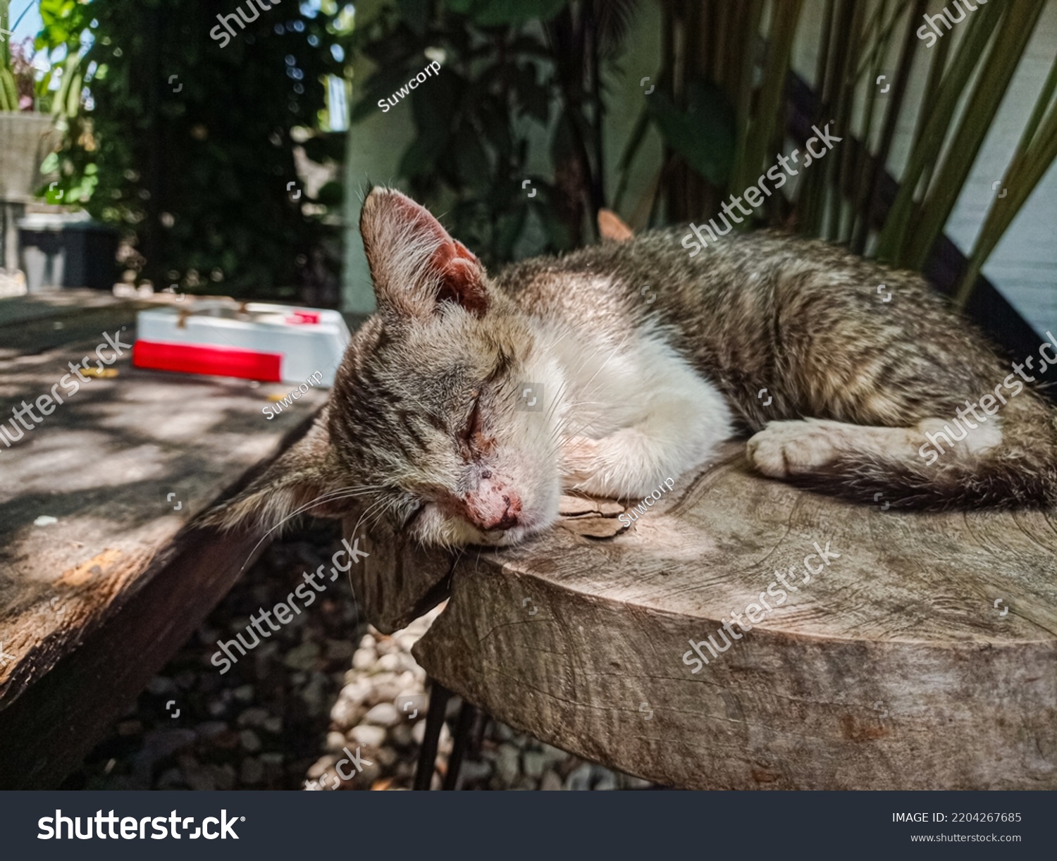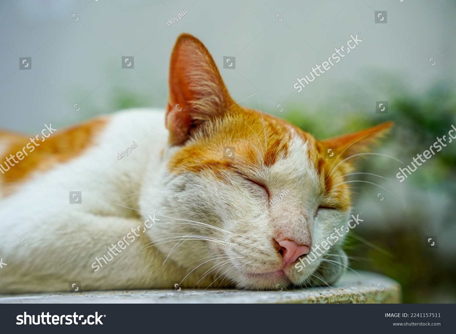 domestic cat sleeping on the cement floor