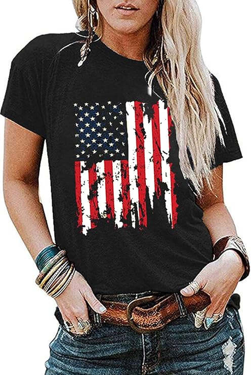 欧美跨境女装 亚马逊tiktok外贸新款usa国旗字母印花圆领短袖t恤
